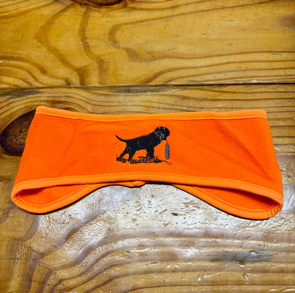 A warm, fleece headband ear warmer featuring the Wildrose puppy logo. Available in blaze orange. Perfect for hunting!